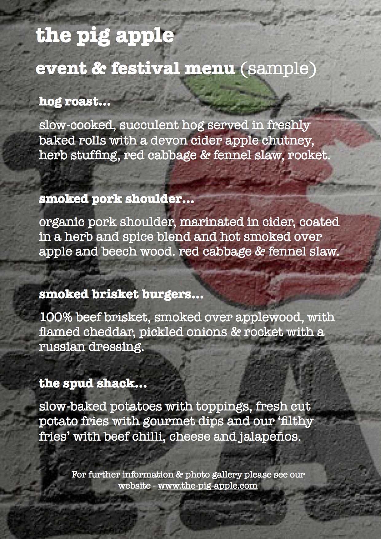 from weddings and street festivals to private parties and corporate bashes the pig apple will be sure to put on a great spread and satisfy your meaty cravings. however large or small your party we can feed you up…